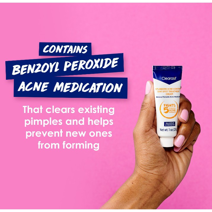 Visible results in as little as 4 hours. Clearasil Stubborn Acne Control 5in1 Concealing Treatment Cream 1 oz Benzoyl Peroxide Acne Medication Pack of 2 238 880 Clearasil Stubborn Acne Control 5-in-1 Spot Treatment Cream with Benzoyl Peroxide Acne Medication to Clear Acne 1 Ounce Pack of 3. Thats why i am asking about clearasil because i didnt remember the ingredient since i used it few years ago my face was itchy and red when i used.