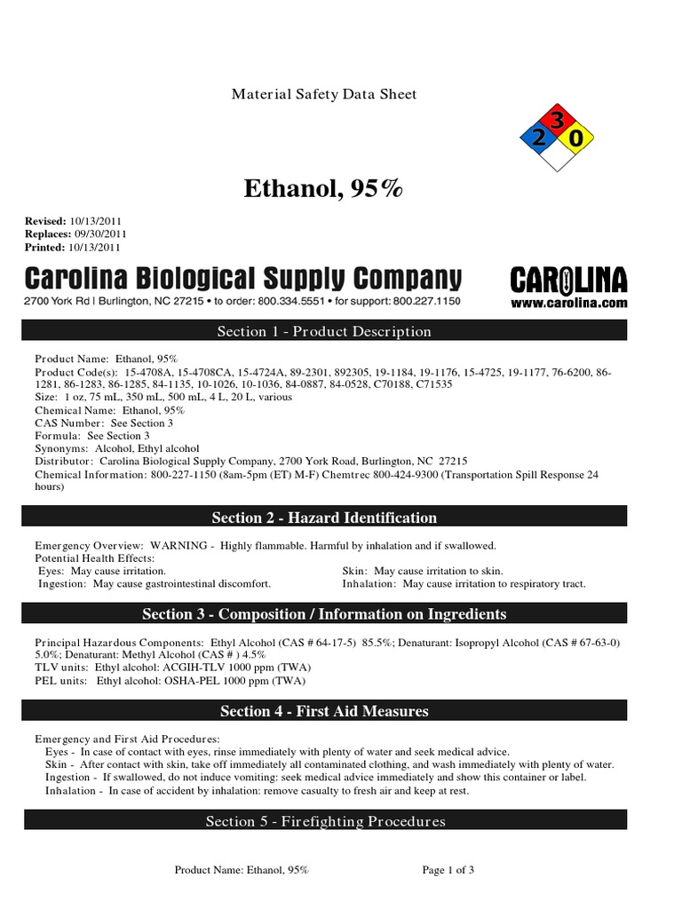 95 ethanol msds. ETHYL AL OHOL 95-100 VOL SYNONYMS. Section 1 - Chemical Product and Company Identification. Konsentrasi etanol dalam darah antara 150-300 mgdL.