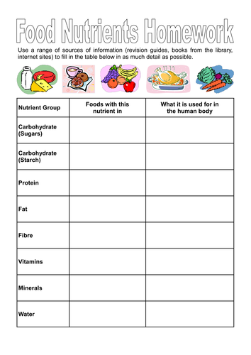 Food Groups And Nutrients Worksheet